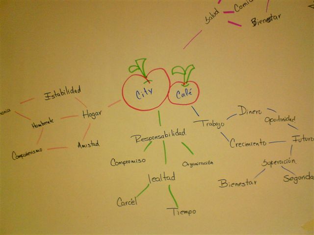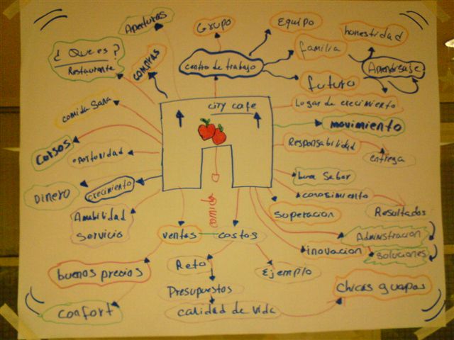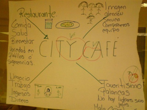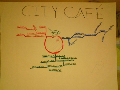 Estos seis mapas comunican lo que es por dentro y/o por fuera CityCafé para cada uno de los equipos de trabajo. Podemos observar que no hay mapas mentales iguales, como no hay mapas mentales buenos o malos; la diferencia radica en que unos comunican más y otros menos.